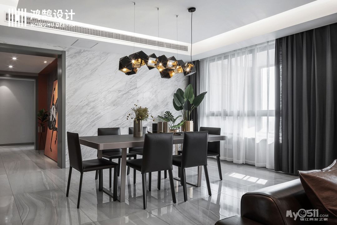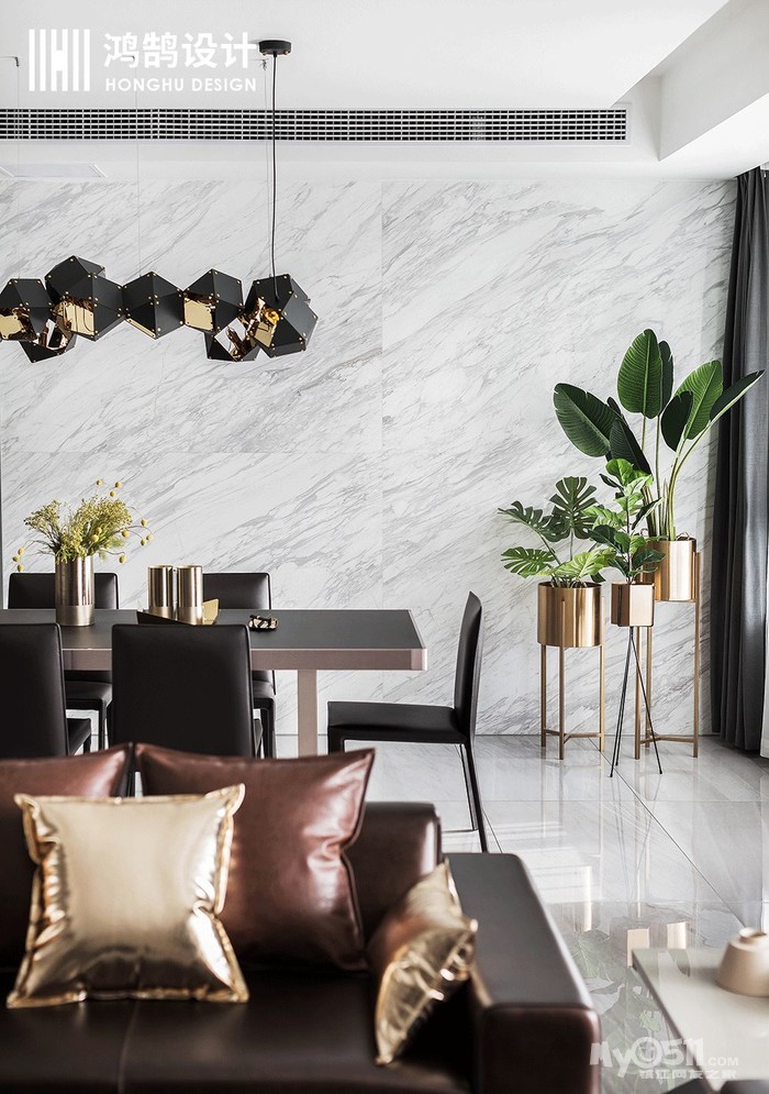 大理石上墙,让整个就餐环境变得通透,个性化的形状吊灯,搭配暖色光线,让就餐风味变得浓厚。