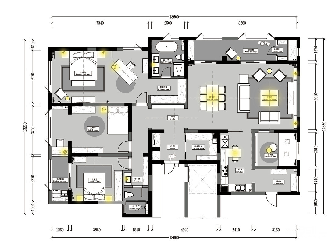 设计说明:家装设计其实更多的是一种对未来生活的规划,我们设计出来的家要有一定远见性和预测性,规划好家庭成员的生活动线是整个设计中很重要的一部分。由于本户型原始结构承重结构比较多,在布局的处理上我没有做过多的拆改,只是根据客户的需求在功能上做了优化。