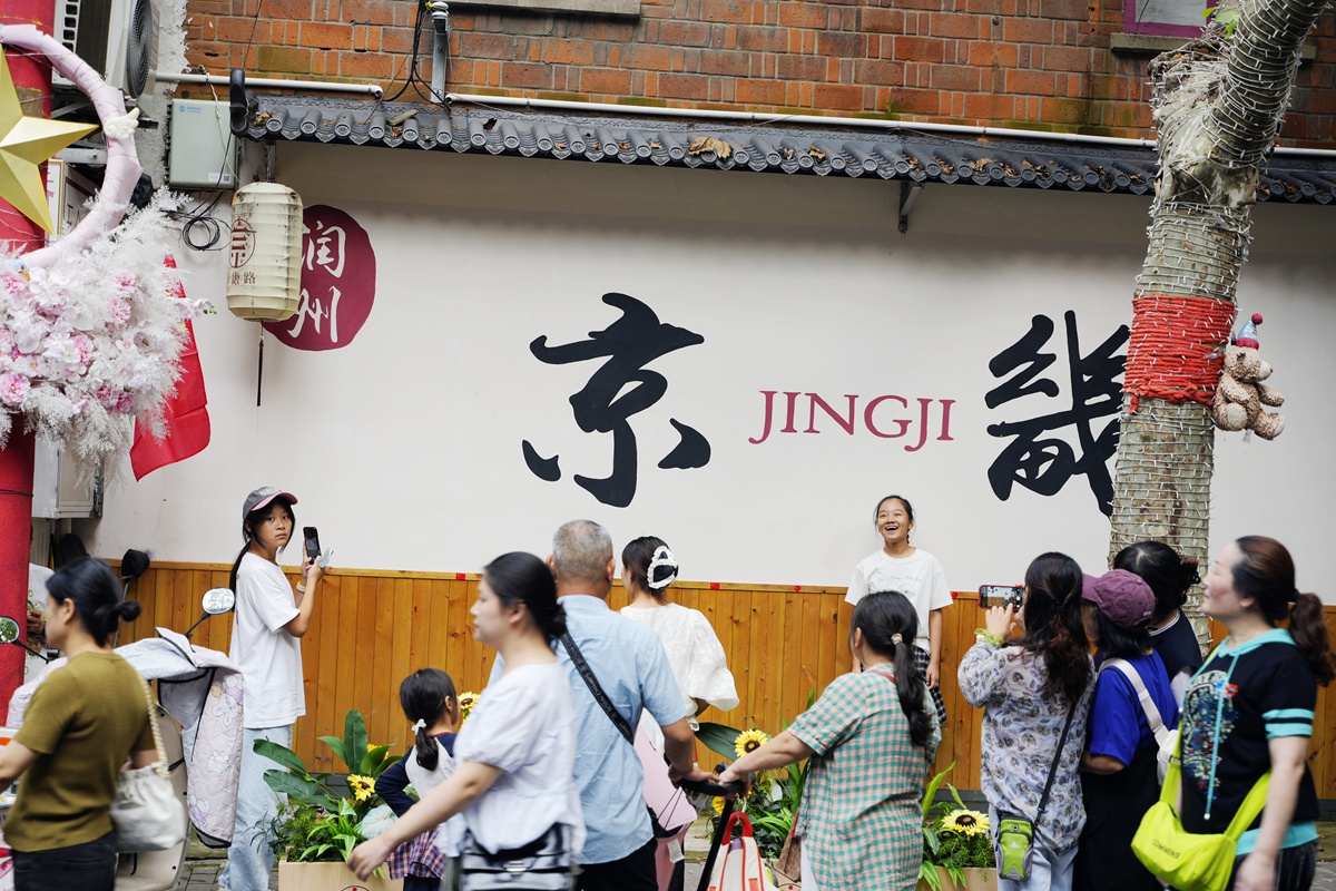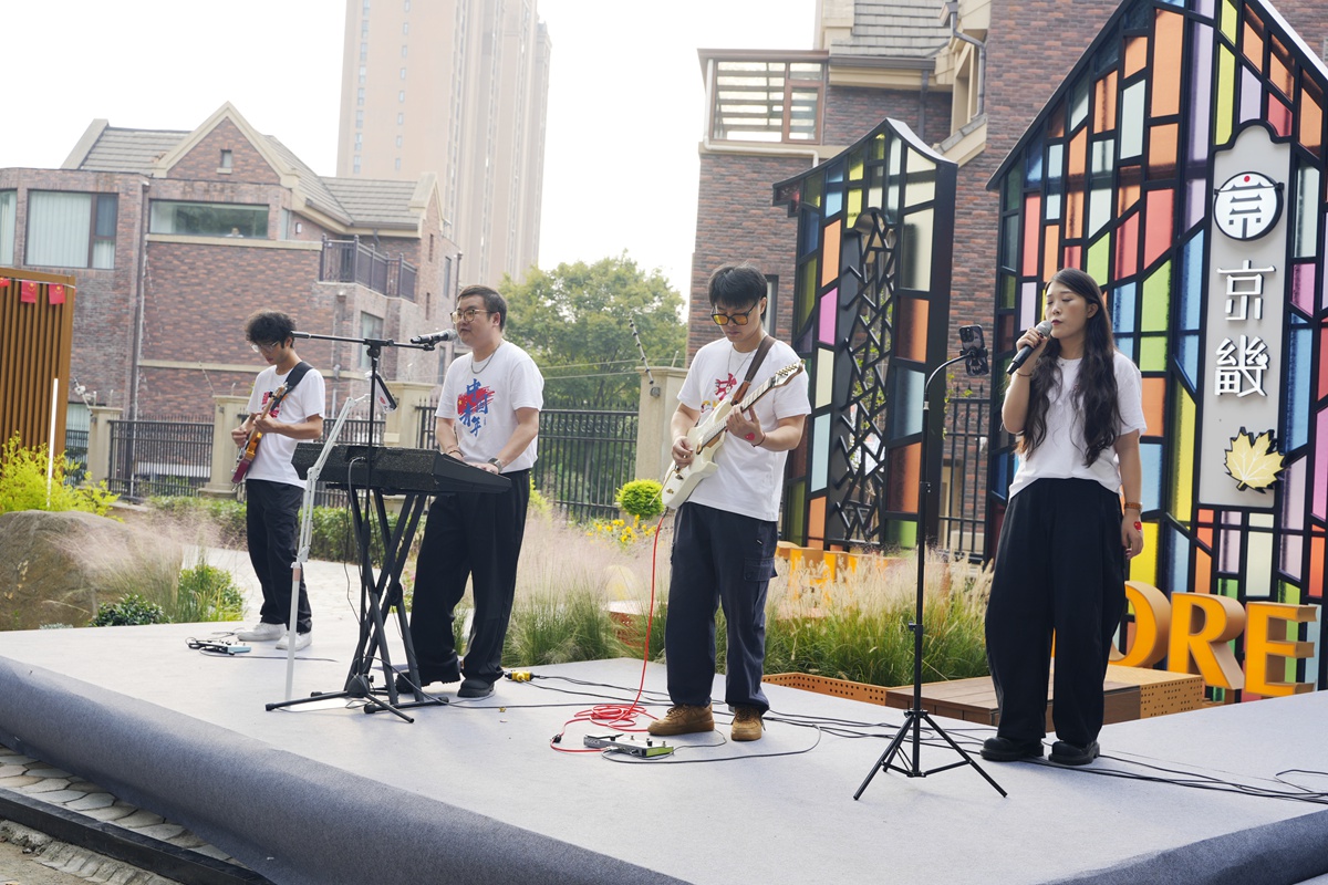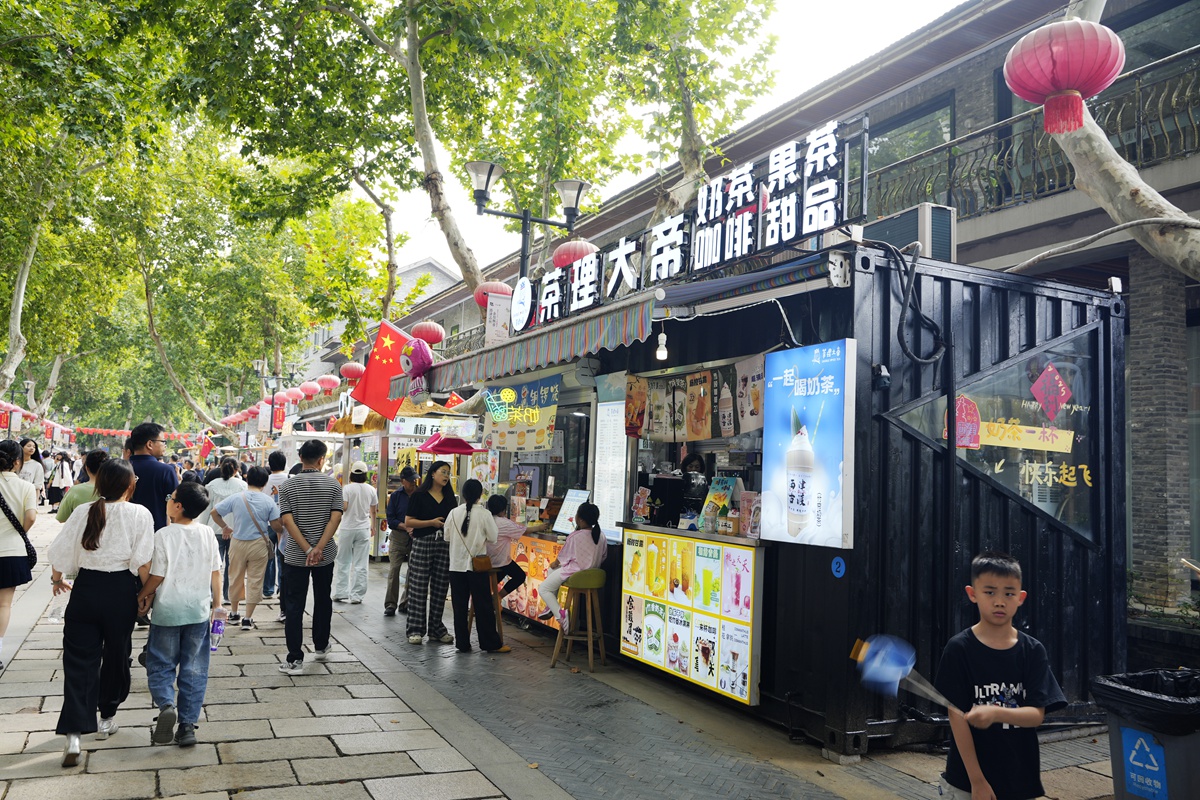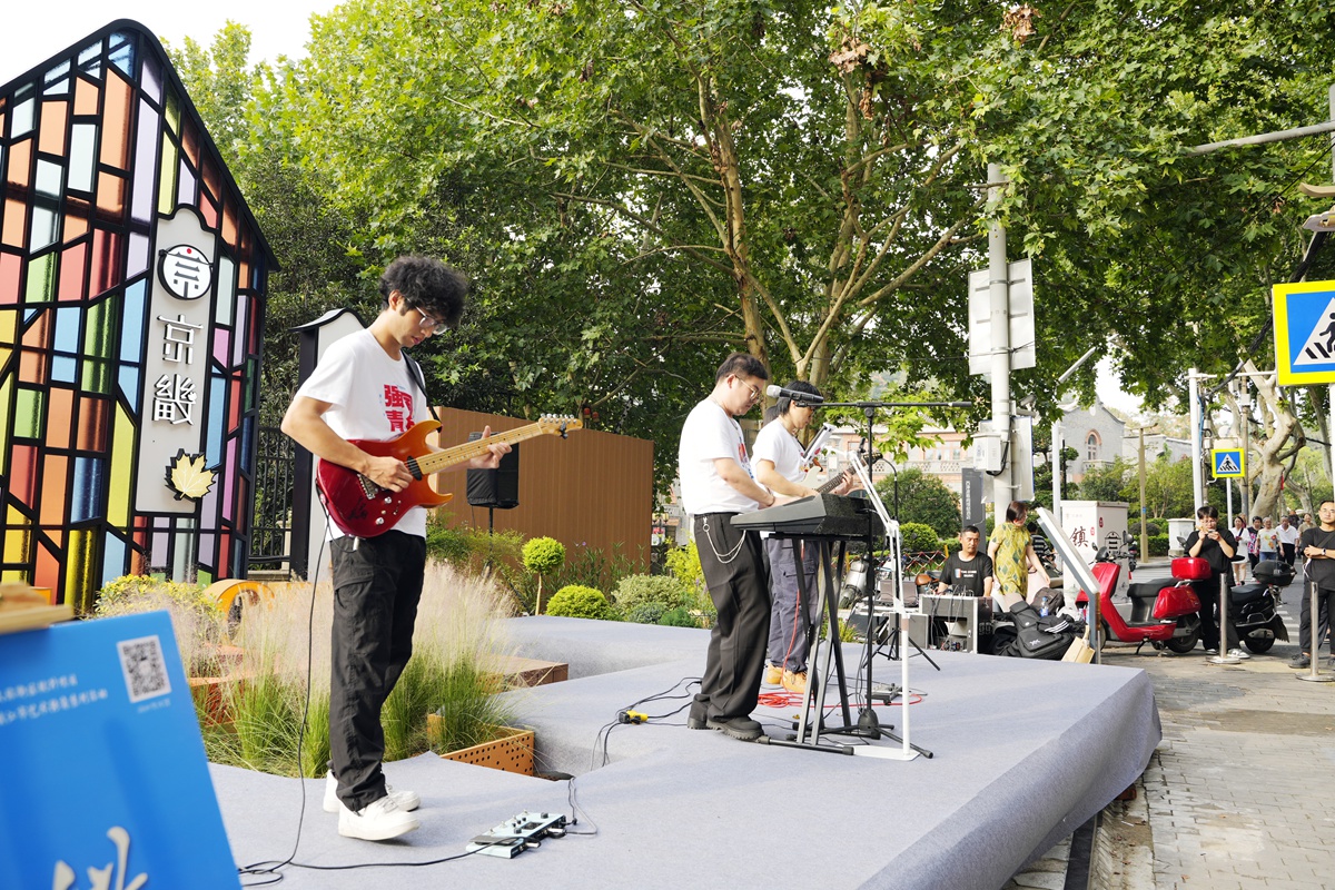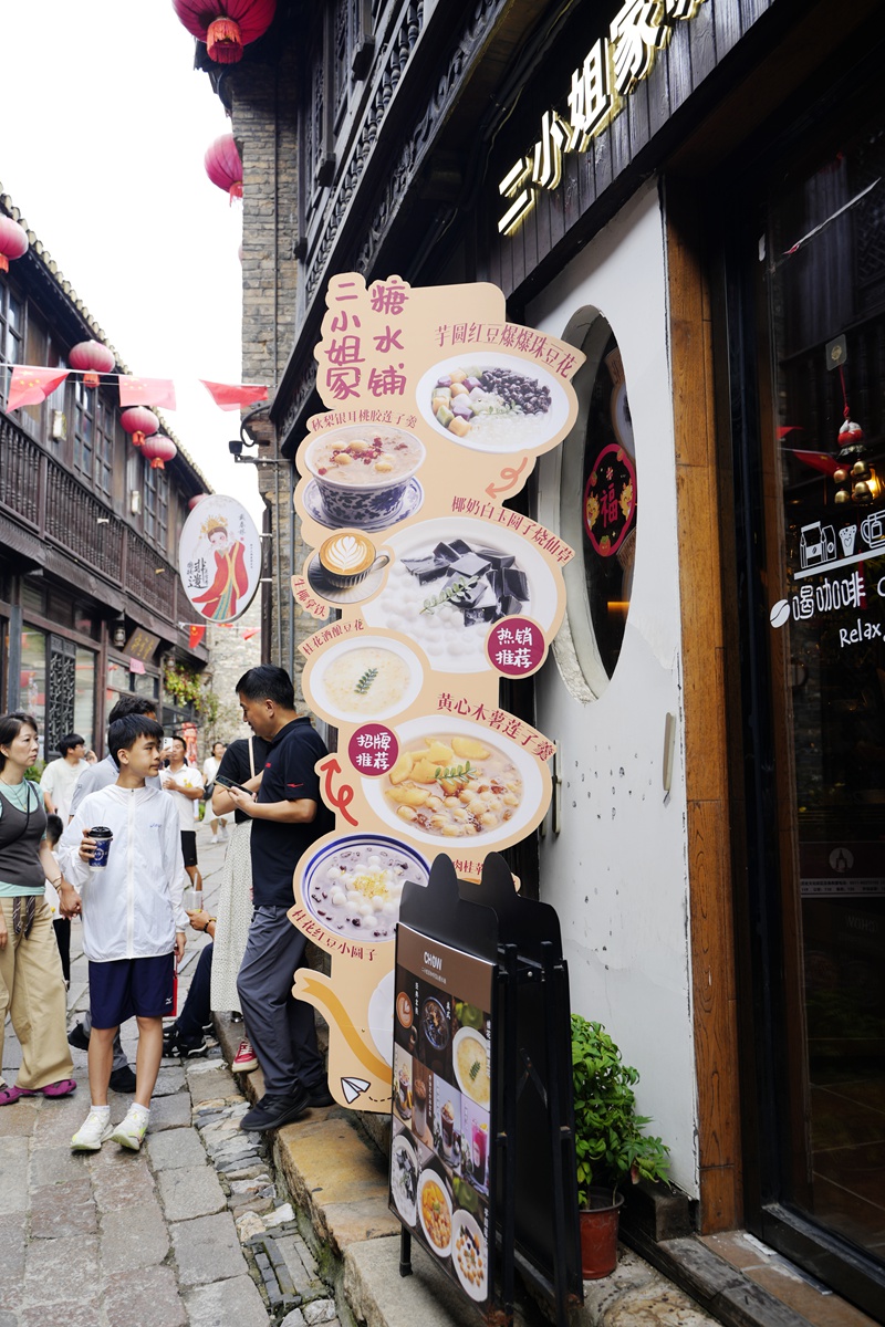 京畿路,节假日人多,活动多,吃了醋味冰淇淋,冰淇淋上撒果碎,味道不错。看了无糖乐队的表演