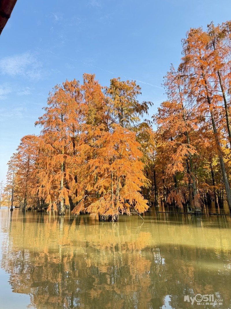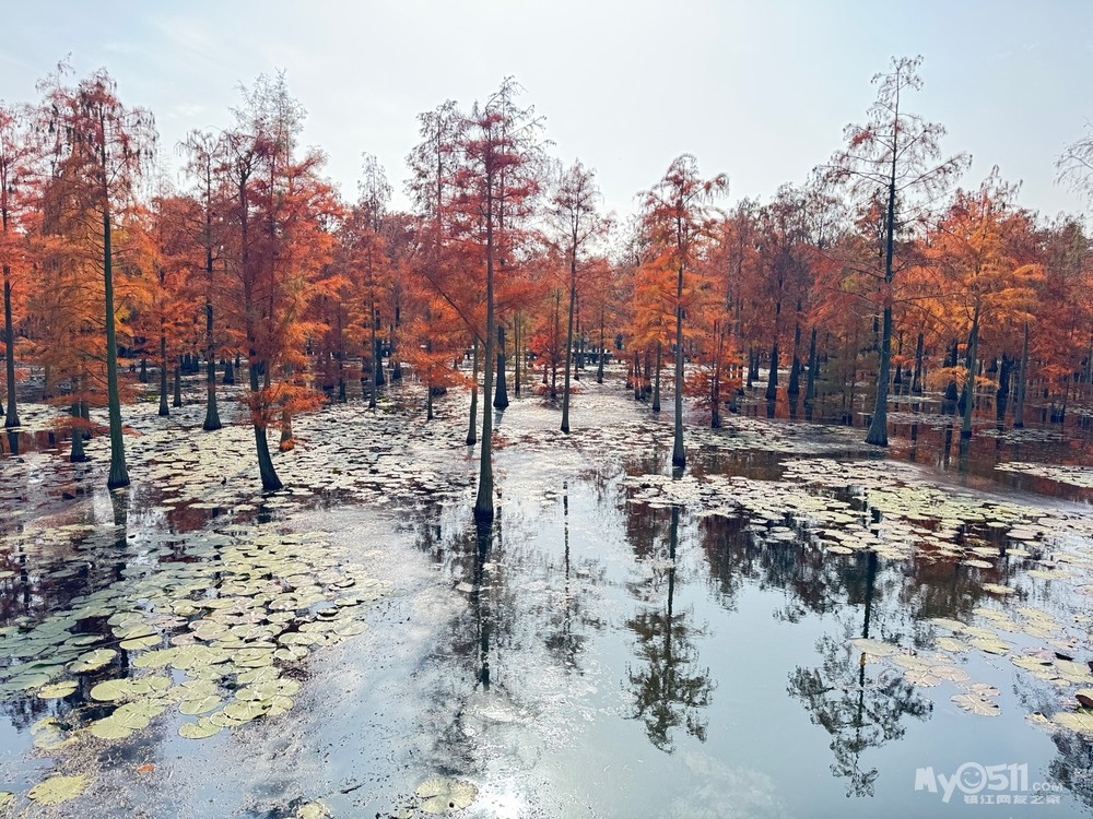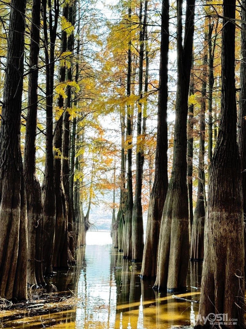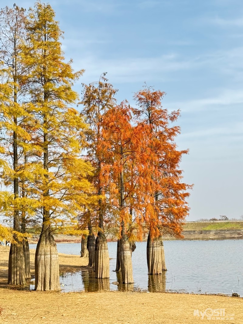 池杉春夏绿色,秋冬红而渐黄,色彩绚丽,养眼养心。
