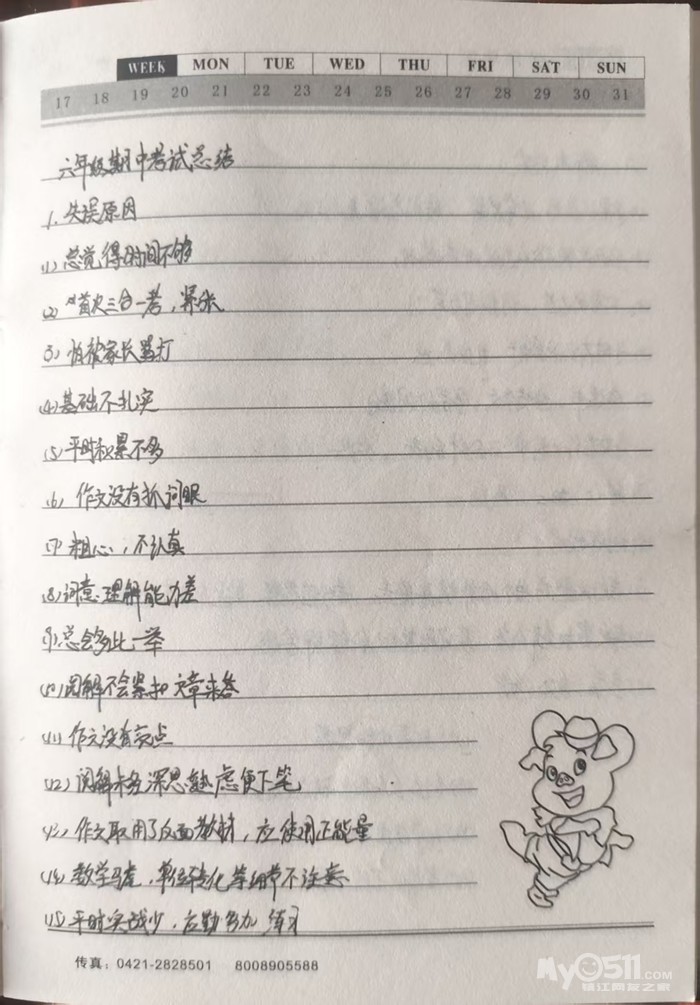 11年前女儿的6年级期中考试后总结,爸爸妈妈的板子高高举起轻轻落下的啊